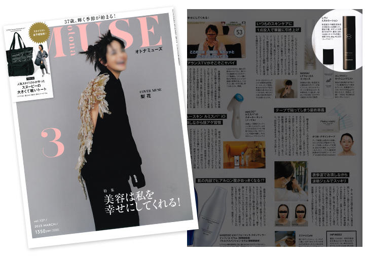 「お顔ブチ上げTIPS」特集内にて、いつものスキンケアに1点投入で華麗に引き上げ!重力に逆らう全身リフトケアを手軽に堪能できる商品としてミストローションをご紹介いただきました。(57ページ)