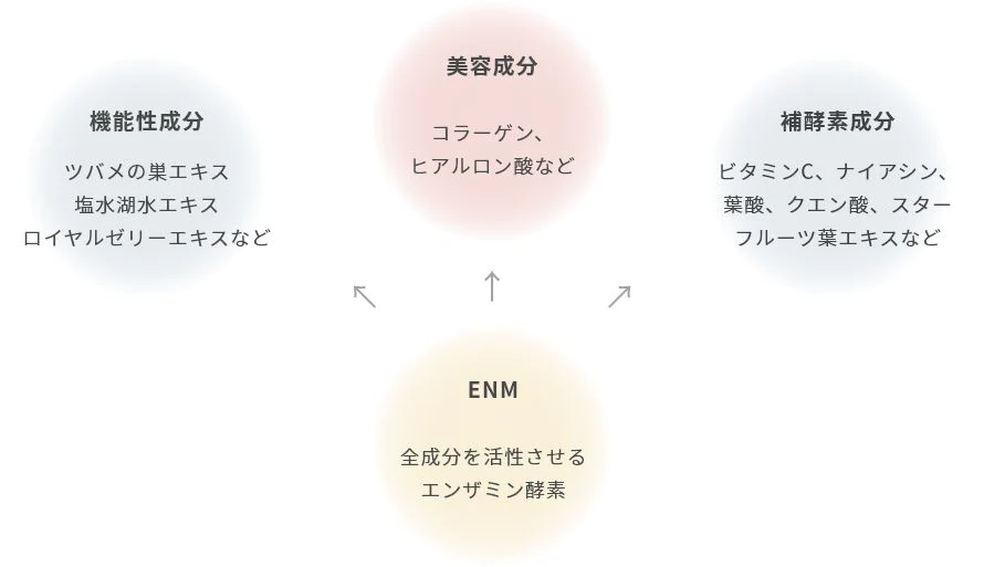 熱と酸に弱く、分子量が大きいという弱点をすべてクリアし、体内酵素の本来の力を最大限に発揮してくれる酵素の元。年齢と共に減少してしまう自分の中の足りていない酵素に成り代わって働いてくれる。