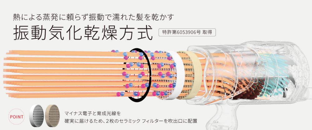 『適温・適湿・マイナス電子・育成光線』に着目した復元ドライヤーは、乾かすだけだった従来のドライヤーの常識を変えました。