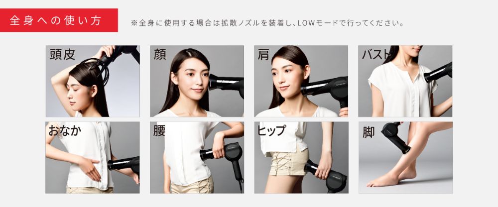 吹き出し温度を低温にしたことで、髪だけでなく顔や全身にまで用途が広がりました。